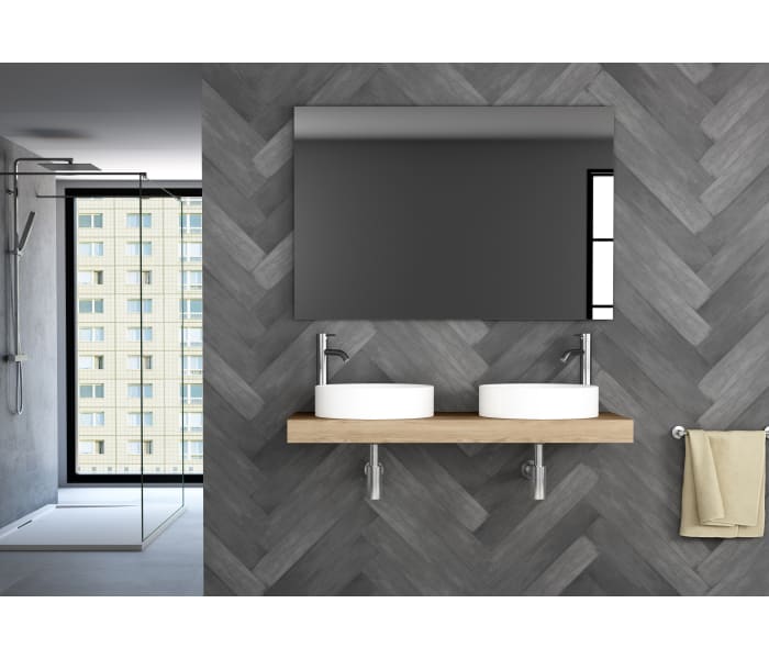 Mueble de baño fondo reducido 39 cm con encimera de madera Bruntec Roma
