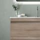 Es un mueble de baño de 3 cajones, que ofrece más espacio de almacenaje. Los tiradores son tipo uñero y los frentes de cajón de una estética muy agradable. Los cajones disponen de guías Hettich, que permiten abrir y cerrar con facilidad y seguridad, y un sistema de cierre suave amortiguado. Organizaro en el cajón superior icnluido.