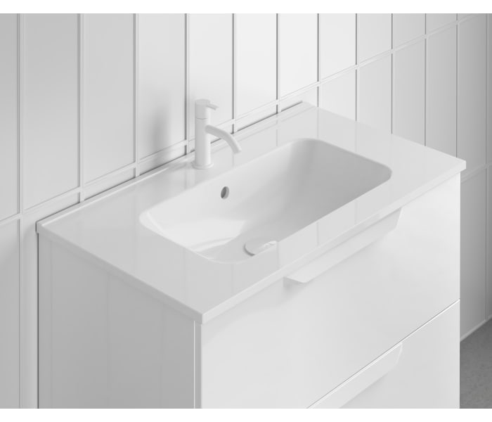 Mueble de baño Suki, con gran sobriedad pero con una sobrada funcionalidad cuyo objetivo es volver a conectar con el baño como espacio de relajación. Un conjunto en el que modernidad y diseño se dan la mano.