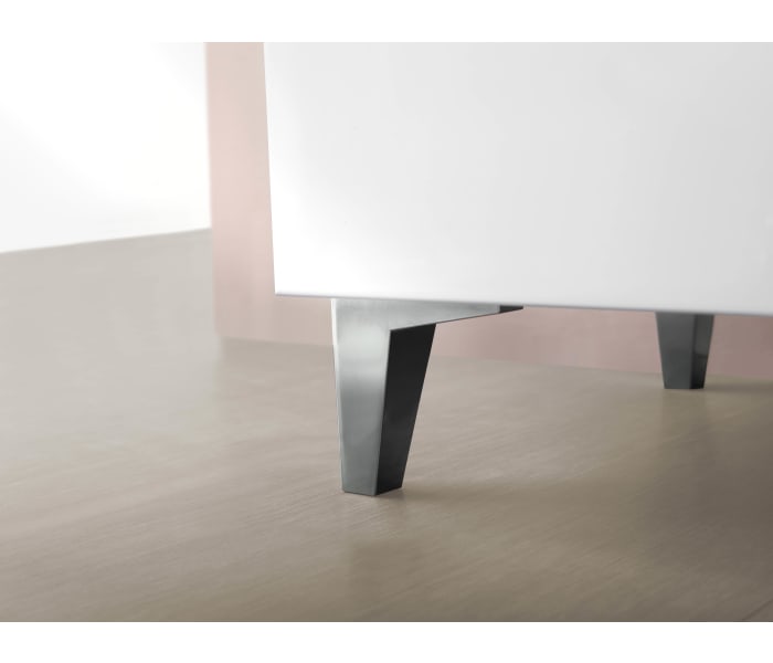 Instalación: El mueble Suki de Amizuva, se instala a suelo con 8 patas en acabado cromo. Se sirve ensamblado por lo que te llegará totalmente amueblado.