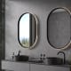 Este espejo de baño ovalado con marco negro texturizado es estándar, pero se fabrica también en dorado texturizado.