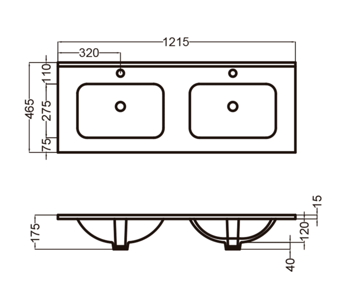 - Forma de la poza - Lavabos de baño: Estándar (rectangular)