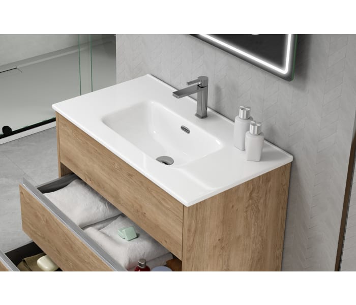 Disponible en dimensiones de 60, 70, 80, 90, 100 y 120 cm de ancho, el Loki ofrece versatilidad sin comprometer el diseño. Con 46 cm de fondo y un perfil delgado de 1.5 cm, este lavabo fusiona elegancia y practicidad. La textura lisa añade un toque distintivo de sofisticación.