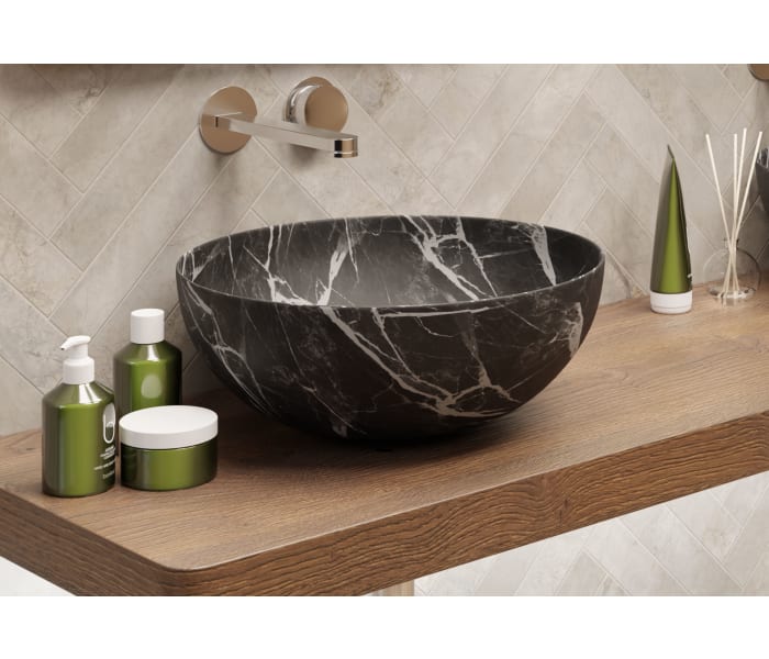 Lavabo sobre encimera Art and Bath Génova Cerámica marmoleado negro mate Ø40x15 cm