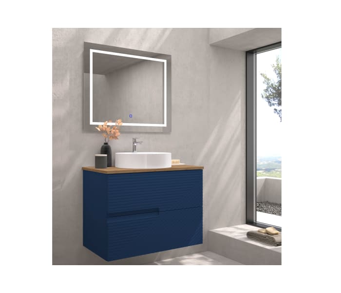 Mueble de baño con encimera de madera Bruntec Limo colores 2 cajones suspendido DM lacado