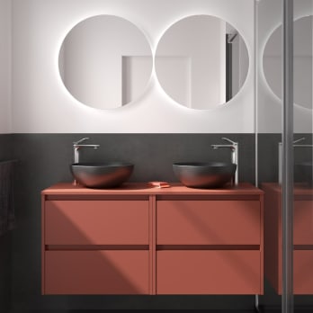 120 cm, 3 cajones con patas y lavabo doble seno Luna de cerámica