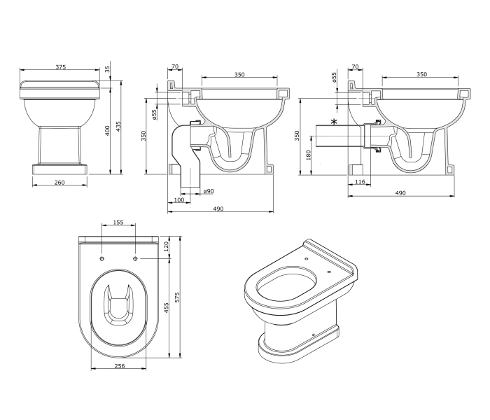 - Medida Inodoro: 43.5 cm de Alto x 37.5 cm de Ancho x 57.5 cm de Fondo