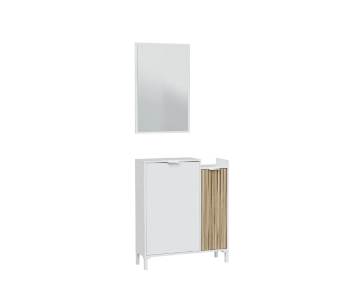 Recibidor Bruntec Tempus 77 cm x 91 cm x 24 cm, color blanco artik y natur, en kit compuesto por 2 puertas y espejo