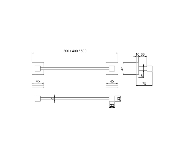Material: Este toallero de baño se fabrica en latón y acero ø16mm y 0.7mm de espesor con perfil cuadrado de 9 mm. Una mezcla ideal para asegurar durabilidad y elegancia.