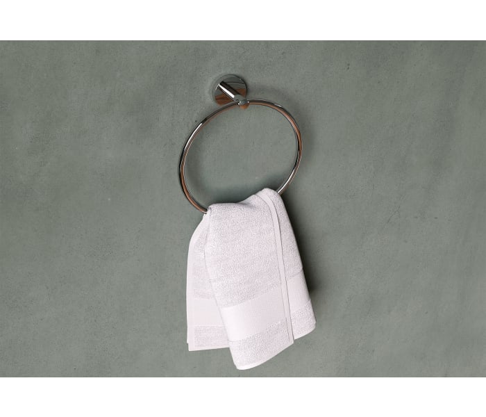 El toallero aro Start de Cosmic une practicidad, estilo y durabilidad en una sola pieza. Fabricado en acero inoxidable y latón con protección anticorrosión, asegura larga vida útil y un acabado impecable.